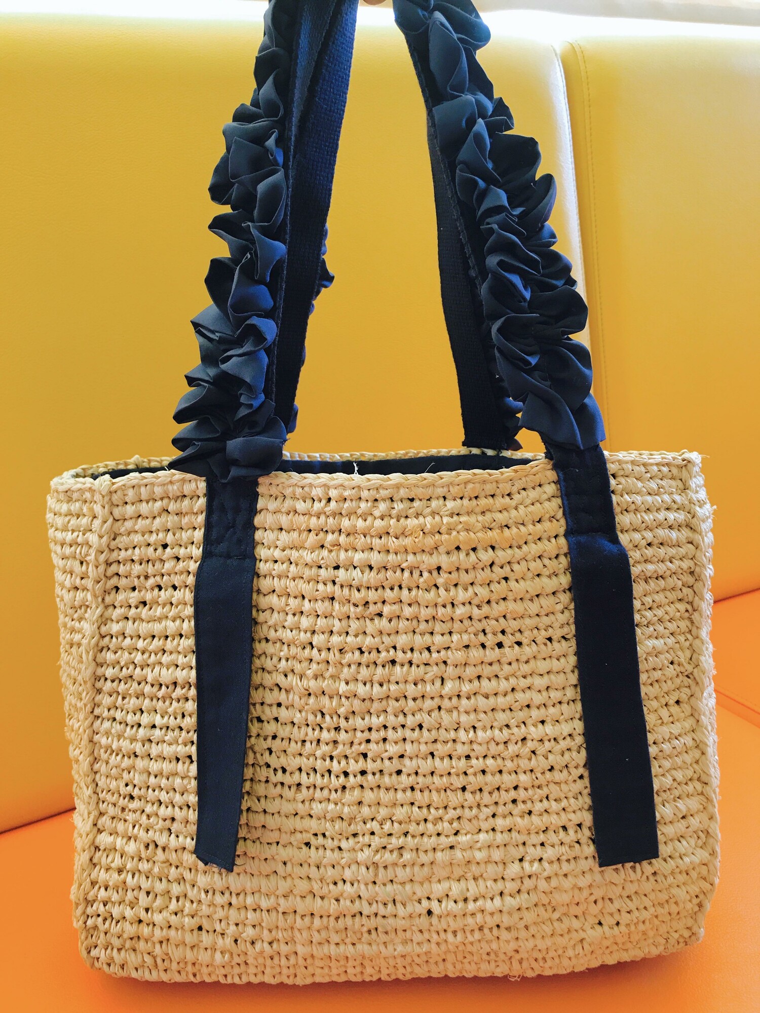 初めてラフィアを編んだにしてはなかなか上手にできて、お気に入りのバッグになりました